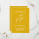 Modern bröllop spara datum-kort med enkel och minimal layout med namn och en elegant i stort format ovanför din händelseinformation. Temat färg är senap-gult och kan ändras i designredigeringsprogrammet i verktyg.