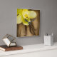 Vaniljpoder och blomma över träbakgrund fyrkantig klocka