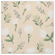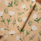 Detta tyg har en ren skandinavisk design med vita blommor på vanilj - perfekt för eleganta syprojekt, hantverk eller inredningsdetaljer