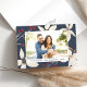 Elegantens helgdag keepsaké-fotoblock innehåller ditt favoritfoto mot en marin blå bakgrund med blek elfenbensblommor och röda bär. Anpassa insidan med ett meddelande och en signering av anpassningsbarna.