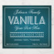 Vanilla-etikett i vitt på teal. Anpassa genom att ändra informationen.