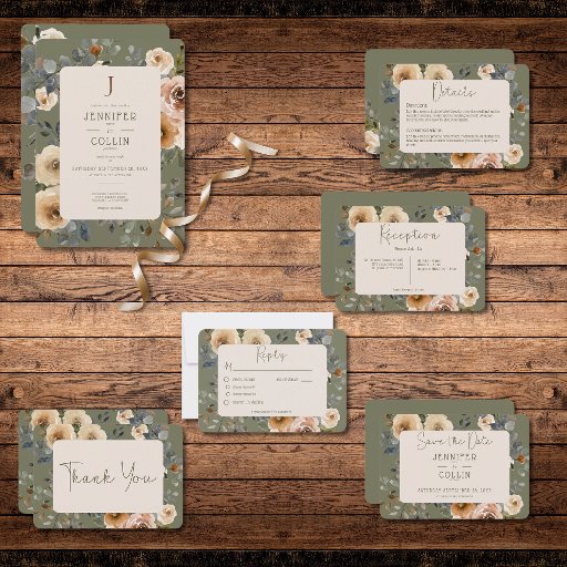 Vanilla White Boho Roses Sage Wedding SuiteDesignad av Kathe Santillo