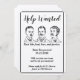 Roligt bröllopskort med texten 'Hjälp sökes'. All text kan anpassas. Retrodesign på kraftpapper.