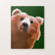 Den görade sammandrag vänliga björnen tittar rakt till dig