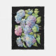 Om du älskar vanlig hortensia, ska du tycker om bestämt den älskvärda blom- konsten på denna filt. Blommas vanlig hortensia visas i ljuvt skuggar från rosor för att slösa till lavendel. Bakgrund är svarten men kan ändras, genom att skräddarsy.