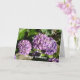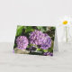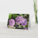 Ett bedöva födelsedagkort för natur- och blommaälskare. Heads den härliga blomman för vanlig hortensia tre i lilor som omges av lövrik grön lövverk. Ett bedöva blom- födelsedagkort.