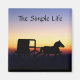 En silhuett av en Amish-häst och buggy rör sig genom den sena eftermiddagen när sol sätter sig i bakgrunden. Texten lyder The Simple Life.