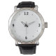 En mycket enkel klocka med enkla gotiska siffror i svart och stor vit yta. Klassisk i designen tidlös lättläst vattentät klocka.