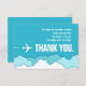 En livfull turkos och vit tack-kort anpassat för alla, vare sig det är vänner, familj eller kollegor som flög ut för att komma och besöka dig, för affärsändamål, en familjesammankomst, ett bröllop eller någon annan stor händelse. Framsidan har en kort och vänlig dikt, medan baksidan har en plats för ditt unika meddelande.