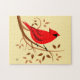 Dekorativ rödkardinalkonst på pussel med snurrande grenar och hösten färg löv
