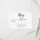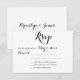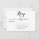 Kort med vit bröllop OSA med svart text i skript utskriven på vit bakgrund