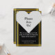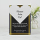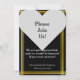 Denna bröllopsinbjudan design har förfrågan "Vänligen Följ Med Oss!" inom ett hjärta, tillsammans med en falsk guldliknande kant. De andra meddelandena kan anpassas.