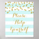 Vänligen hjälp dig själv bar eller efterrätts bord skylt affisch för baby shower, bröllopsfest eller brud shower, i ljus babyblå och vit randig mönster med guld konfetti, vänligen notera guld glitter är endast fotografisk effekt. Perfekt för en baby shower, bröllop eller brud shower.