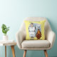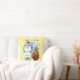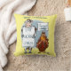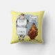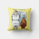 En kudde med en lustig tecknad om en ko och kalkoner som säger att man ska äta mer kyckling. Bilden och texten kan vara personlig.