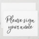 En stilfull handskriven skylt med texten "Vänligen skriv under"