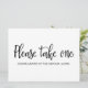 En enkel och vacker specialtillverkad kalligrafi "Vänligen ta en" bröllopsskylt, personlig med din text. Denna handskrivna skylt kan användas för att ge en modern stil på bröllopsreceptionen.