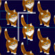Den original- konstdesignen av en gullig ingefära- eller orangetabby katt mot en midnatt blåttbakgrund av den djura konstnären och formgivare Carolyn McFann av studion för två spinnakatter som skrivs ut på högkvalitativt bomullstyg för kattunge, fläktar.