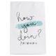 Ge tillfälle ett leende med FRIENDS™-designen "Hur gör du?". Den här designen visar Joey Tribbianis oförglömliga slagord i ett lekfullt och snyggt format och fångar humor och charm som fläkt i det älskade TV-programmet är förtjust i. Perfekt för alla FRIENDS™-entusiaster, vilket ger en roligt och nostalgisk beröring till alla produkter.