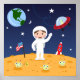 Vänner i rymden, söta barn tecknad väggkonst