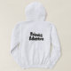 Hoodie-designen har en bildbakgrund med silhuetter av vänner på olika äventyr som hiking, biking och camping. Sloganen "Vänner och Äventyr" visas tydligt i ett lekfullt, äventyrligt teckensnitt som symboliserar vänskap och upptäckt.