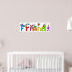 Teckning i ord FRIENDS med olika och lycklig små barn som klättrar över brev.