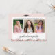 Inbjudan till studentfest för en kombinerad fest för två eller tre vänner eller syskon med bilder på framsidan och festinbjudan på baksidan. Chic design med roséguld och pastellrosa blommor och grå, handritade blad samt den föreslagna titeln KLASSE ÅR # UTGÅNG med tre foton (en av varje om det är tre vänner eller, för två personer, välj ett foto av var och en och en med båda i mitten).