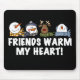 Tre snögubbar och en renare smyckar dessa söta helgdag, magneter, hälsningskort, T-shirts och andra artiklar och text: "Friends Warm My Heart!". Dessa T-tröjor och andra helgdag är perfekter för hela vintern, inte bara för jul!