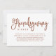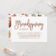 Bjud in dina vänner till din version av Thanksgiving-middag med dessa stilfulla inbjudningar! En vit bakgrund har rik, brun modern handskriven typsnitts typografi. Baksidan av tackinbjudan har ett vackert mönster med höstlöv.