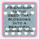 Vänskap är fröet en vacker inspiration till vänskapen! Bakgrunden är blå med vita hjärtan som läggs över en abstrakt hjärtan och blommor med rosa gräns! Gör ett spännande meddelande till en speciell vän!