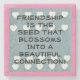 Vänskap är fröet en vacker inspiration till vänskapen! Bakgrunden är blå med vita hjärtan som läggs över en abstrakt hjärtan och blommor med rosa gräns! Gör en fantastisk gåva till en speciell vän!