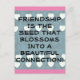 Vänskap är fröet en vacker inspiration till vänskapen! Bakgrunden är blå med vita hjärtan som läggs över en abstrakt hjärtan och blommor med rosa gräns ovanpå och grund! Baksidan görs i solid rosa! Gör ett spännande meddelande till en speciell vän!