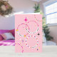 Illustration av tre begade vänskaper med "JINGLE", "NOEL" och "MERRY&BRIGHT"-bakgrunden är rosa med stjärnglasdesignen.