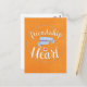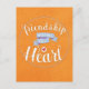Färgfyllt vykort med "Vänskap varnar hjärtat"-slogan i en vacker typografisk design på en orange som är texturerad. Roligt-kort som ska skickas till en vän eller nära en eller visningar i ditt hem på en hylla eller ett mantelstycke.