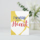 Färgfyllt vykort med "Vänskap varnar hjärtat"-slagord på gultens bakgrund med vitt hjärta mönster. Roligt-kort som ska skickas till en vän eller nära en eller visningar i ditt hem på en hylla eller ett mantelstycke.