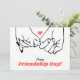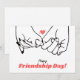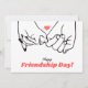 Med det här eleganten Helgdag Card fira vänskapens skönhet. Det här Helgdag är en perfekt för att förmedla hjärtliga känslor. Det har ett minimalistiskt svart- och vitt konst på två händer som är sammanlänkade med finger, med ett litet rött hjärta som symboliserar vänskapens band. Budskapet "Lycklig Vänskap Day!" på framsidan kompletteras med ett personligt budskap längst bak, vilket gör att du kan lägga till en egen hälsning till din vän. Det här kortet är en underbar keepé som kapslar in vänskapens innersta väsen.