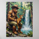 Den här hjärtekonsten har Bigfoot, en stor hårstrumpa med en cowboyhatt och byxor, som försiktigt petar en ung hjort. De sitter på en fuktig logg nära ett strömmande vattenfall i en lush grönt skog. Solljusfilter genom träd, skapande påsatt ljus på scenen. Målningens tjocka, texturerade penseldrag ge är en vismisk och ömmande känsla för denna oväntade vänskap i vildmarken.