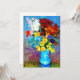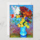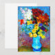 Kort med motiv från Vincent van Goghs oljemålning Blommor i en blå vas (1887). Vackra blommor i olika färger är arrangerade i en blå vas: röda, lila, vita, blå, gula, röda, orange. En underbar present för fans av postimpressionism och holländsk konst.