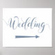 Bröllop-riktningsskylt med en pil som pekar höger i dammblått färg