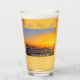 Ett pint glas med gyllene solnedgång i Lahaina, med löslig bild. Baksidan har fullt av solnedgången som man ser från Lahainas strand Maui. En "av ett slag"-souvenir från ett besök på en fantastisk O'ahu.