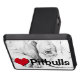 En svartvit BIRO-illustration (kulspetspenna) av en grovtråd som tålmodigt väntar på att ägaren ska få avslutat avläsning av pappra för att ta dem ut. Har ett rött hjärta och ord "pitbulls". Av BIRO Artist ~ Robin Hewitt. Underbar gåva till din favorit American Pitbull Älskare!