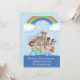Cute babyduschinbjudan för twillingar, där Noahs Ark-tema med vackra djur fyller upp båten och regnbågen och molnen i himlar. Lägg till förväntat mor namn på framsidan för en inbjudan till personlig. Noahs Ark-originalkonstverk.
