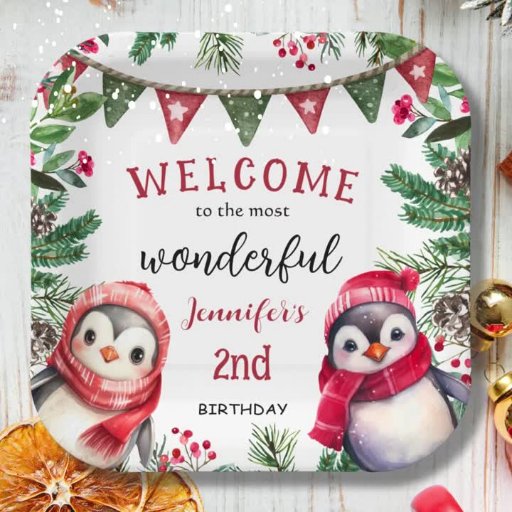 Cute Penguin Christmas 2nd Birthday PartyDesignad av H-Art Studio Design