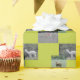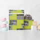 Alpaca-foton. Bilder av tre olika alpreakor staplas diagonalt och replikeras över pappra med en medelstor grönt som bakgrund. Det finns en vit alpaca, en rostbrun, vit och brun.
