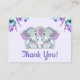 Anpassade Tack för ditt kort/Märkre med Lila och Teal Twin Elephants med blommor, söta små jordnötter med blommor och bokor.