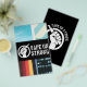 En inringad, stiliserad, klenchad fläck som håller ett mod som avger ånga, med ord "Vape On Strong" på sidan. Ett budskap till medångare som framhärdar och bekämpar negativitet med kunskap och information.
