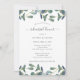 Dessa enkla och trendig botaniska bröllop-repetitionsmiddagsinbjudningar har grönt-vattenfärgen eucalyptus löv och löv på en minimalistisk vit bakgrund med modernt handskript.