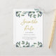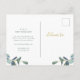 De här enkla och trendig botaniska vykorten bröllop spara datum har grönt eucalyptus löv och löv på en minimalistisk vit bakgrund med modernt handskript från guld.