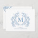 Monogramanteckningskort för Vapensköld av klassisk Fransk, blått Blommigt