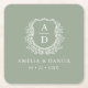 Vapensköld av Sage Grönt Monogram Bröllop Blommigt Underlägg Papper Kvadrat