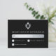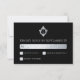 Denna svarta och silver elegant bröllop OSA kort, med vintage luft, har i överdelen en vintage faux silver foil-vapensköld med ett monogram i den, från 2 initialer åtskilda med en linje. Bakgrunden är svart. All text har en lätt grått färg som liknar faux silver vapensköld, förutom M, som är svart. Ställe för namn och kryssrutorna är från Faux silver och har rundade hörn. På baksidan finns samma vapensköld för vintage med monogram. Vapenskölden för blommigt av vintage kommer från en gammal bok-täckmantel, från bok, "Rust, Smut Mildew & Mold", från 1870, som nu är offentlig.